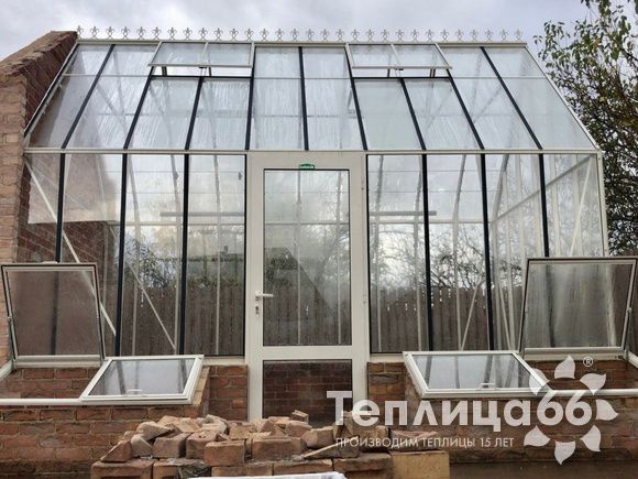 Теплица односкатная Victory Пристенная с закаленным стеклом, ширина 2.54м